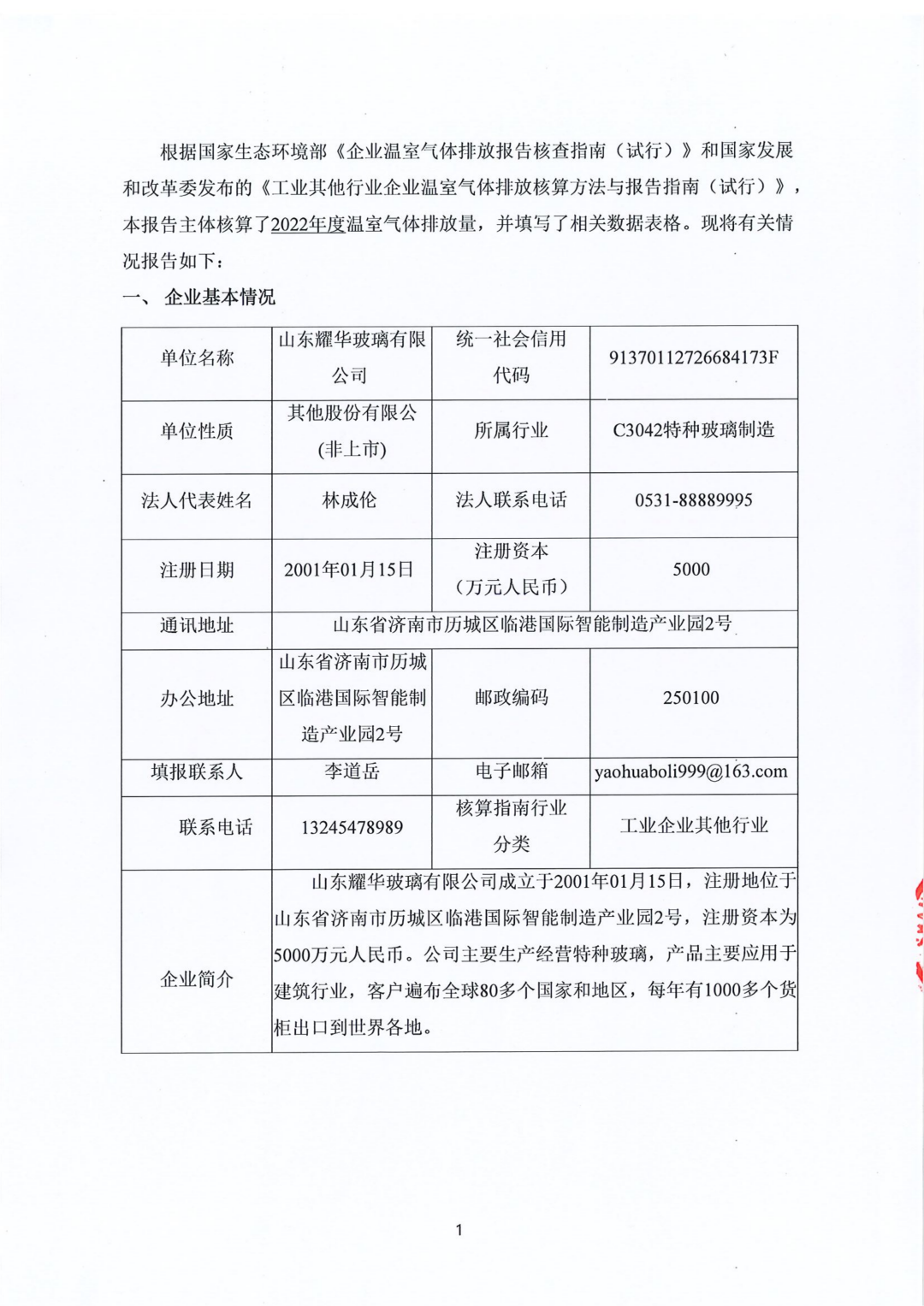 山東耀華玻璃有限公司2023年度溫室氣體排放報告