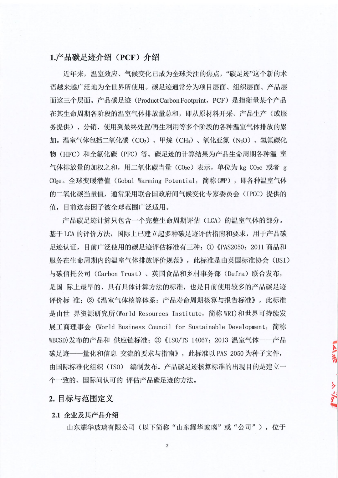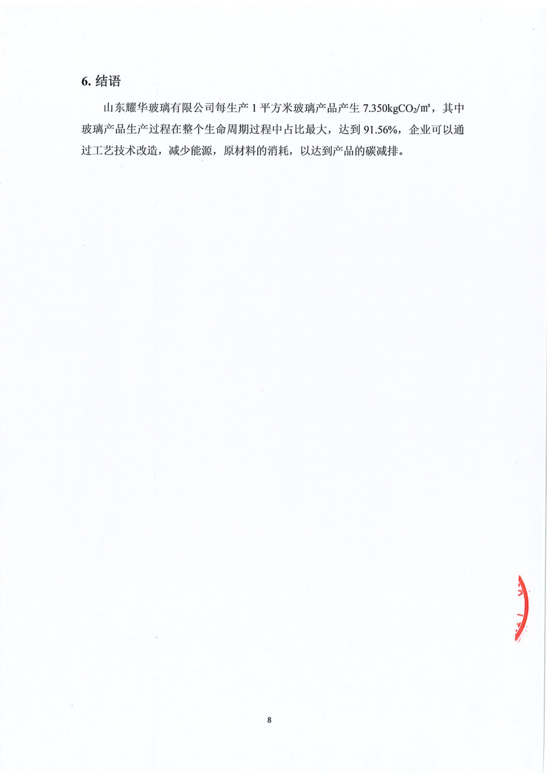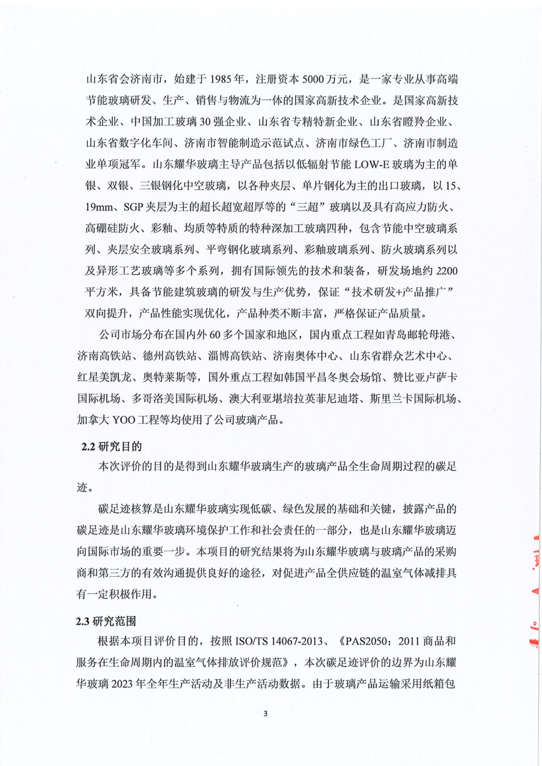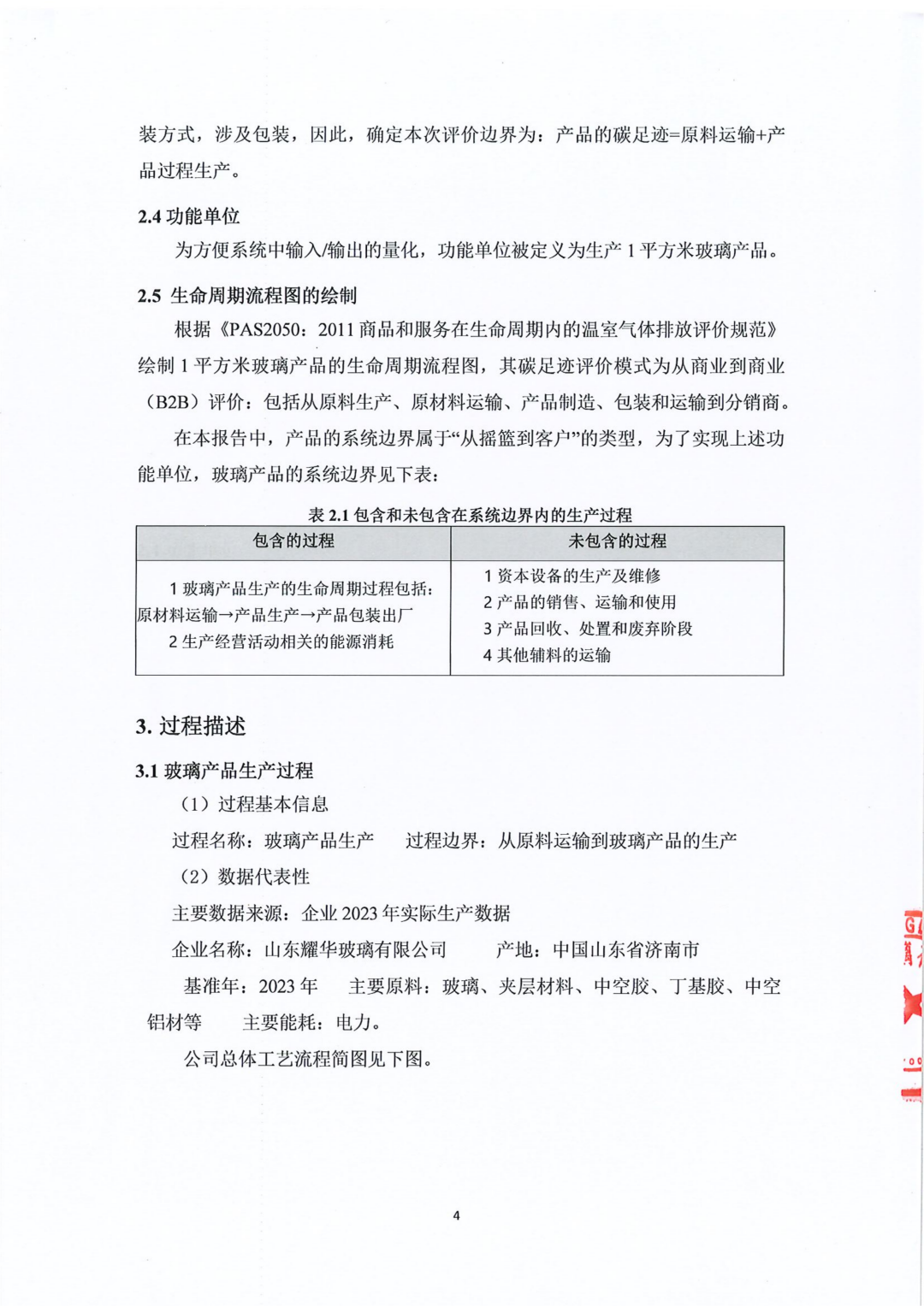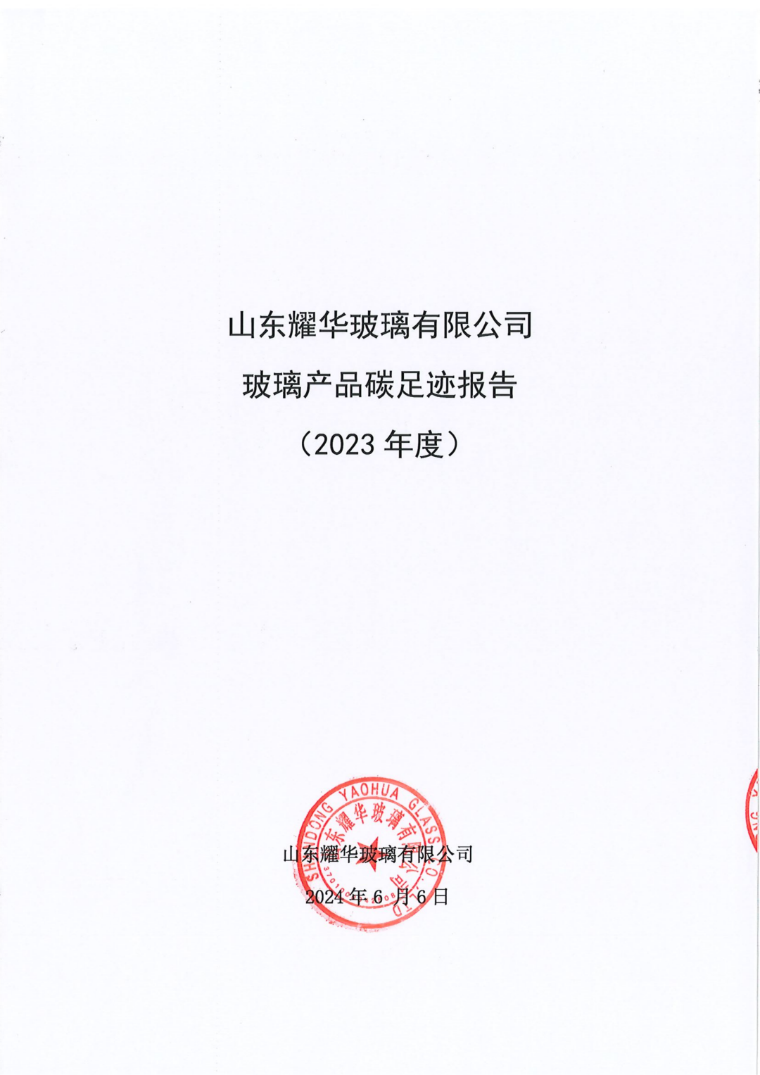 山東耀華玻璃有限公司玻璃產(chǎn)品碳足跡報告(2023年度)