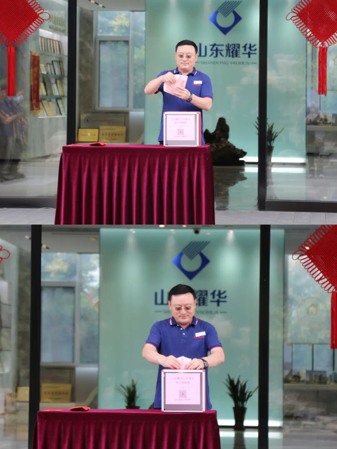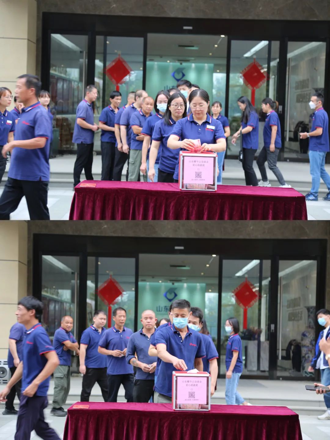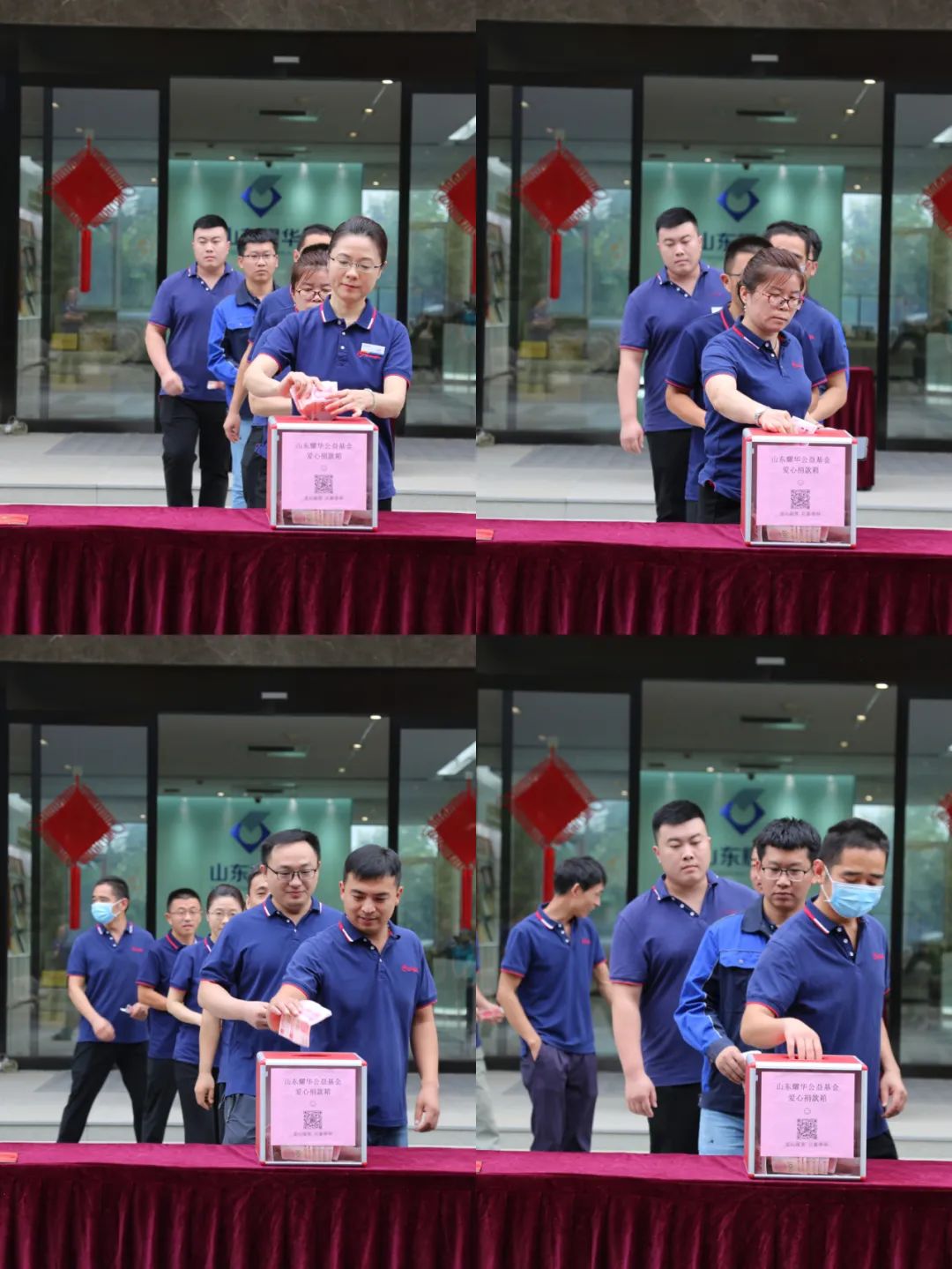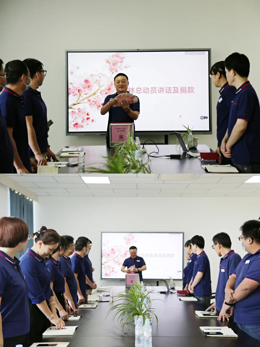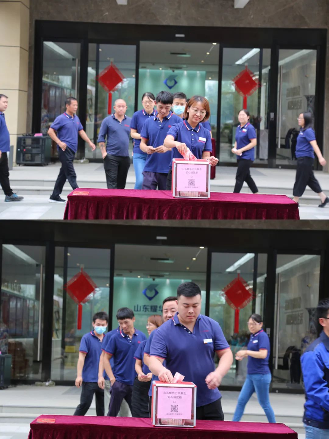 2022年9月5日,董事長林成倫在公司周例會做捐款動員講話,并代表公司將2022年1月1日-9月4日銷售額萬分之一的款項捐贈至山東耀華公益基金。