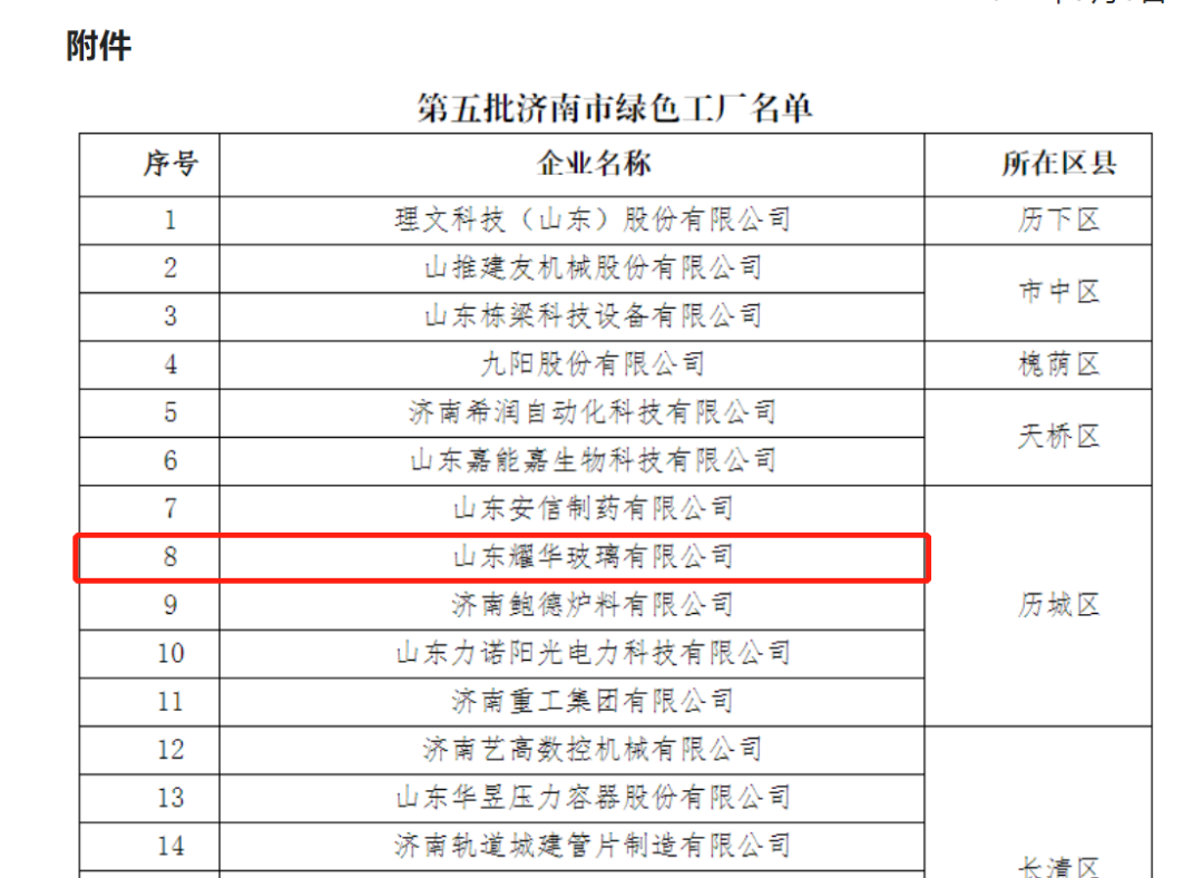 近日,濟南市工業(yè)和信息化局公布了第五批濟南市綠色工廠名單,山東耀華玻璃公司順利通過了“綠色工廠”認定。