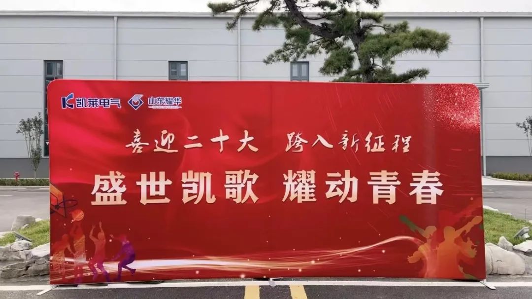 喜迎二十大,為展現(xiàn)企業(yè)員工積極向上、奮發(fā)拼搏的精神,10月15日山東凱萊電氣公司與山東耀華玻璃公司聯(lián)合舉辦第一屆“凱耀杯”籃球、乒乓球友誼賽,比賽活動(dòng)取得圓滿成功。本次比賽活動(dòng)主題為:喜迎二十大,跨入新征程,盛世凱歌,耀動(dòng)青春。