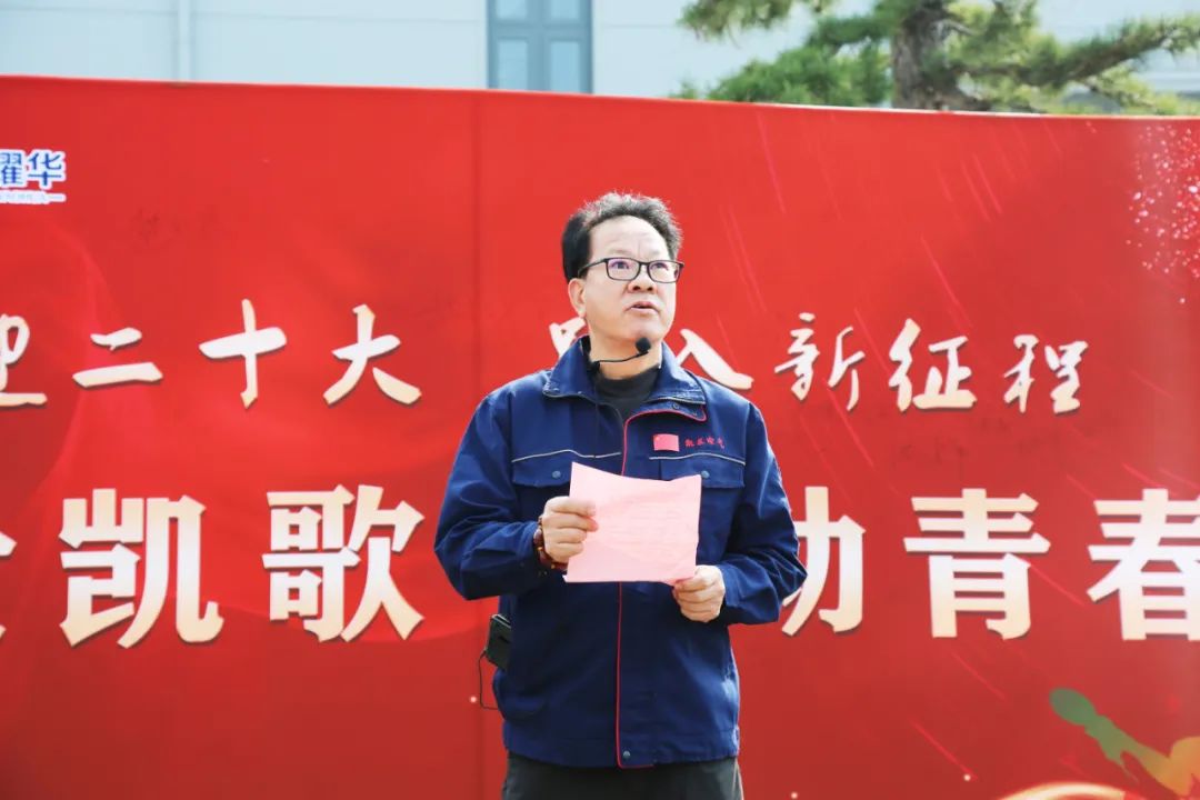 趙總代表代表凱萊電氣公司的各級(jí)干部員工向所有參賽隊(duì)員、裁判員、啦啦隊(duì)等同事、朋友致以誠(chéng)摯問(wèn)候!本次活動(dòng)設(shè)定主題為“盛世凱歌 耀動(dòng)青春 喜迎二十大 跨入新征程”。這是山東耀華與凱萊電氣在文化活動(dòng)方面的重要縮影,也是迎接二十大的一份美好祝福。希望全體運(yùn)動(dòng)員都能以高昂斗志、高超球藝、賽出友誼、賽出風(fēng)格、賽出水平,祝愿第一屆“凱耀杯”籃球、乒乓球比賽圓滿成功!