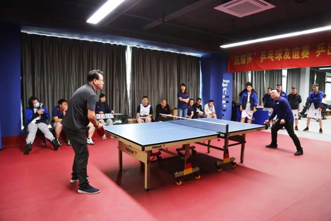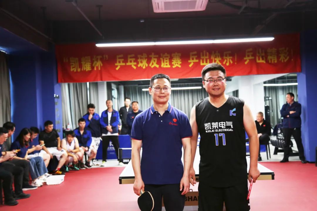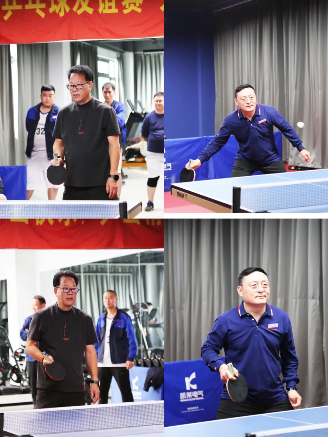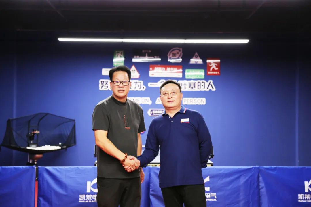 乒乓球正式比賽前,山東凱萊電氣趙忠良董事長(zhǎng)與山東耀華林成倫董事長(zhǎng)表演賽精彩紛呈。