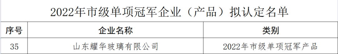 近期濟(jì)南市工業(yè)和信息化局組織了2022年度濟(jì)南市瞪羚企業(yè)、2022年度單項(xiàng)冠軍企業(yè)申報工作,濟(jì)南市發(fā)展與改革委員會組織開展了2022年濟(jì)南市工程研究中心申報工作,對符合申報條件的企業(yè)進(jìn)行了嚴(yán)格的評審。近日,濟(jì)南市工業(yè)和信息化局、濟(jì)南市發(fā)展與改革委員會公布了認(rèn)證名單,山東耀華玻璃有限公司均成功入選,榮獲濟(jì)南市瞪羚企業(yè)、制造業(yè)單項(xiàng)冠軍企業(yè)、節(jié)能建筑玻璃濟(jì)南市工程研究中心榮譽(yù)稱號。