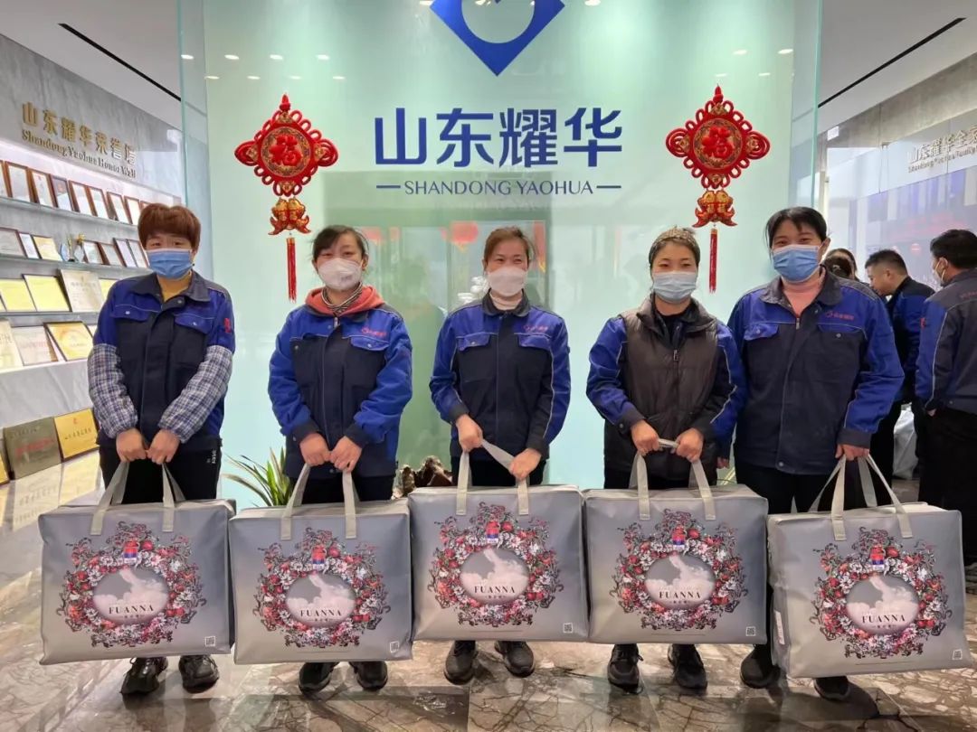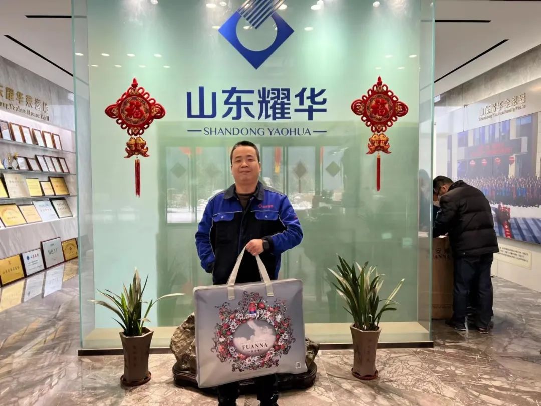 迎接山東耀華38周年,公司為員工精心準(zhǔn)備了周年慶禮品:富安娜精品四季被,祝全體員工幸福一“被”子,溫暖一“被”子。