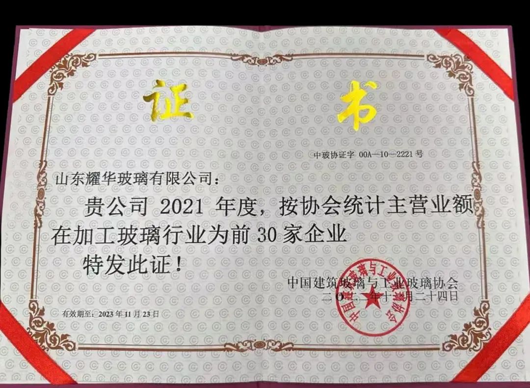 此次榮譽(yù)的獲得不僅是行業(yè)與協(xié)會對山東耀華的肯定,更是推動公司前進(jìn)的動力。山東耀華作為中國加工玻璃30強(qiáng)企業(yè)和國家高新技術(shù)企業(yè),客戶遍布海內(nèi)外60多個國家和地區(qū),優(yōu)質(zhì)的產(chǎn)品品質(zhì)和良好的誠信經(jīng)營理念為公司贏得廣泛贊譽(yù)。
