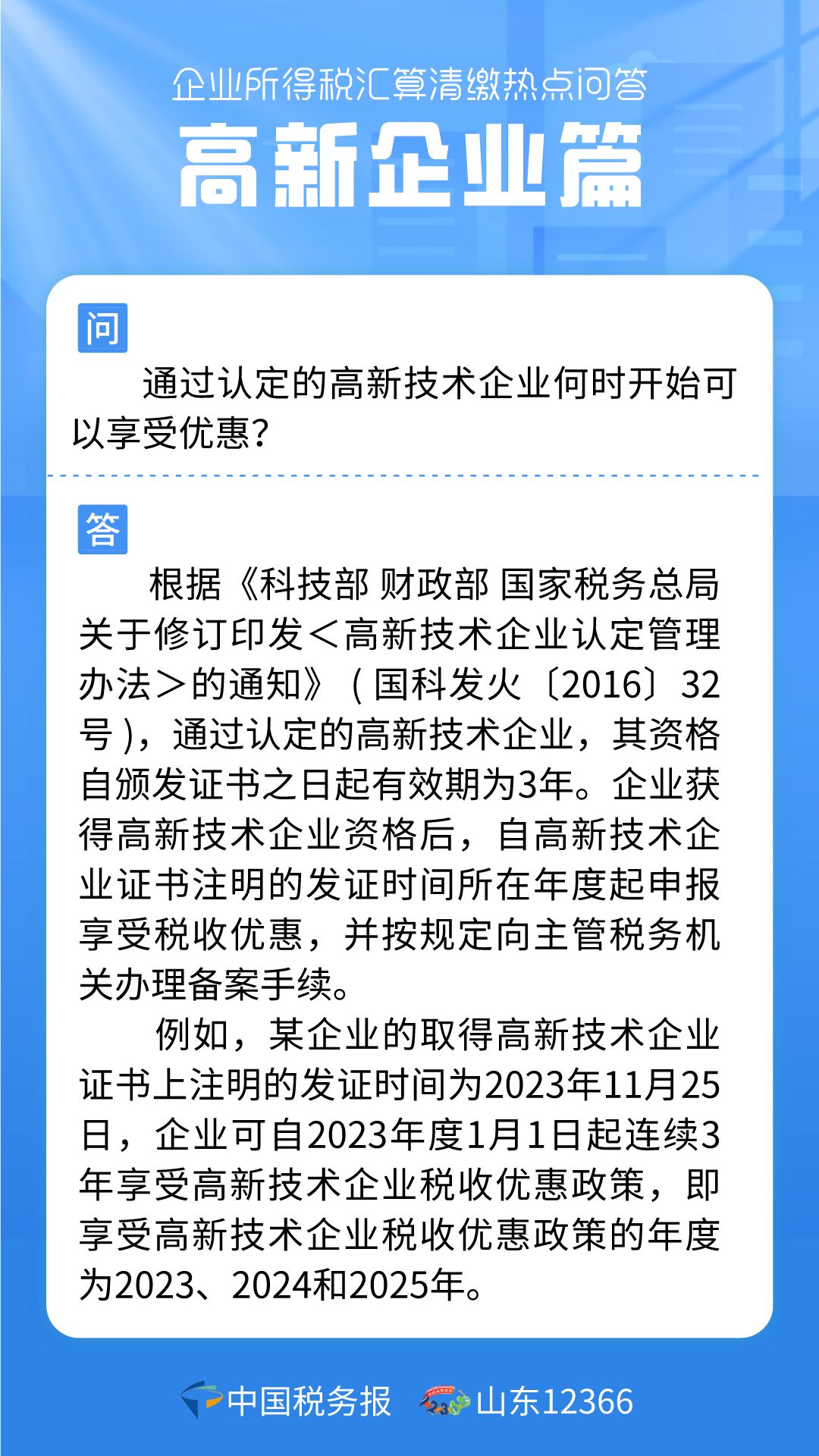高新技術(shù)企業(yè)是支撐高質(zhì)量發(fā)展的重要?jiǎng)?chuàng)新源頭,是推動(dòng)新質(zhì)生產(chǎn)力發(fā)展的主力軍。為鼓勵(lì)和支持高新技術(shù)企業(yè)的發(fā)展,《中華人民共和國(guó)企業(yè)所得稅法》規(guī)定,國(guó)家需要重點(diǎn)扶持的高新技術(shù)企業(yè),減按15%的稅率征收企業(yè)所得稅。高新技術(shù)企業(yè)享受該項(xiàng)稅收優(yōu)惠政策需要注意哪些問(wèn)題?一起來(lái)看看吧↓